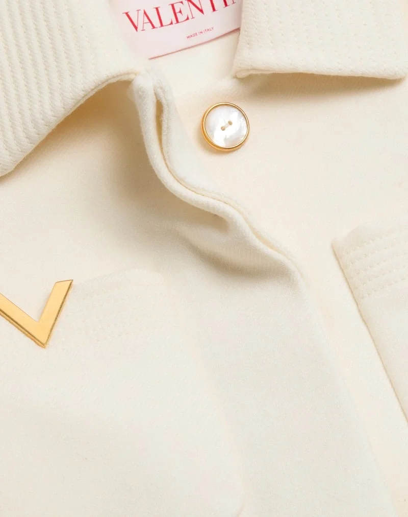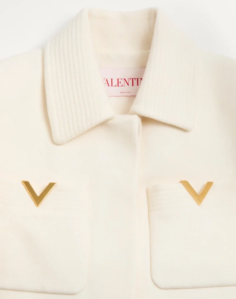 The look of the model is completed by a Valentino Garavani Vain Bag and Valentino Garavani Bowow Shoes.