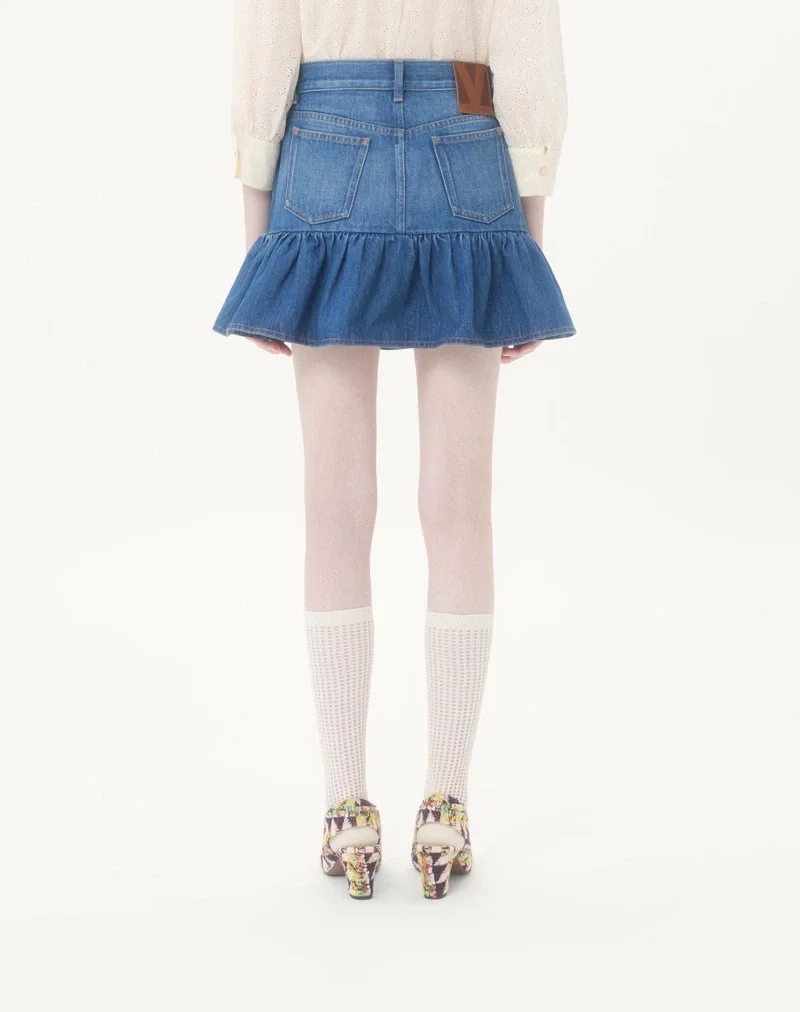 Denim mini skirt with ruffle hem