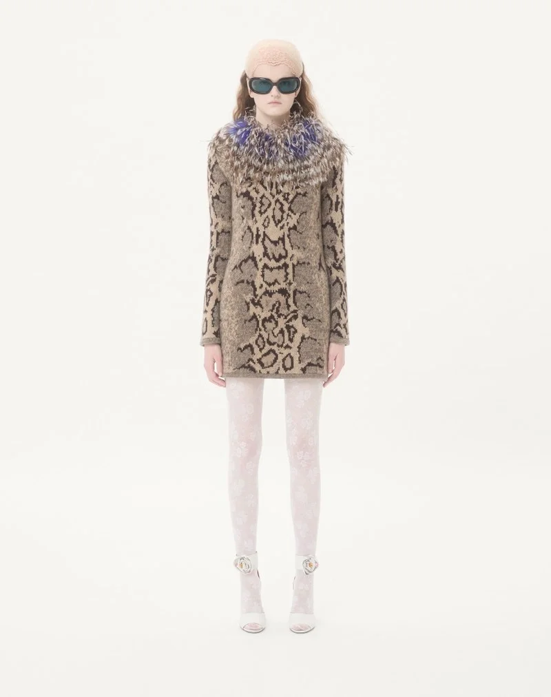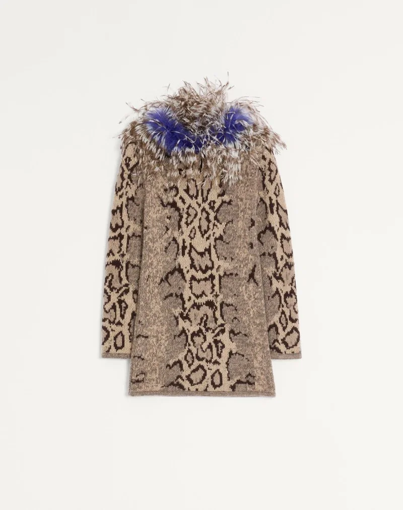 Visit the Valentino Online Boutique and discover Cashmere Dress With Animal Print And Feathers for Woman. Complimentary shipping and returns.