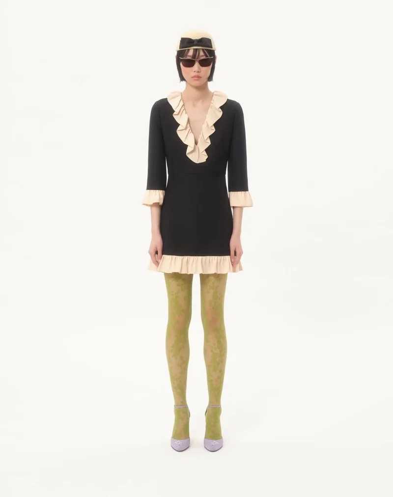 Crepe Couture short dress with ruffles