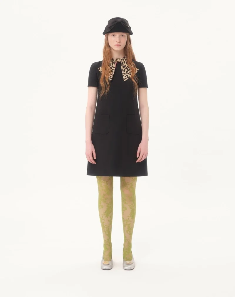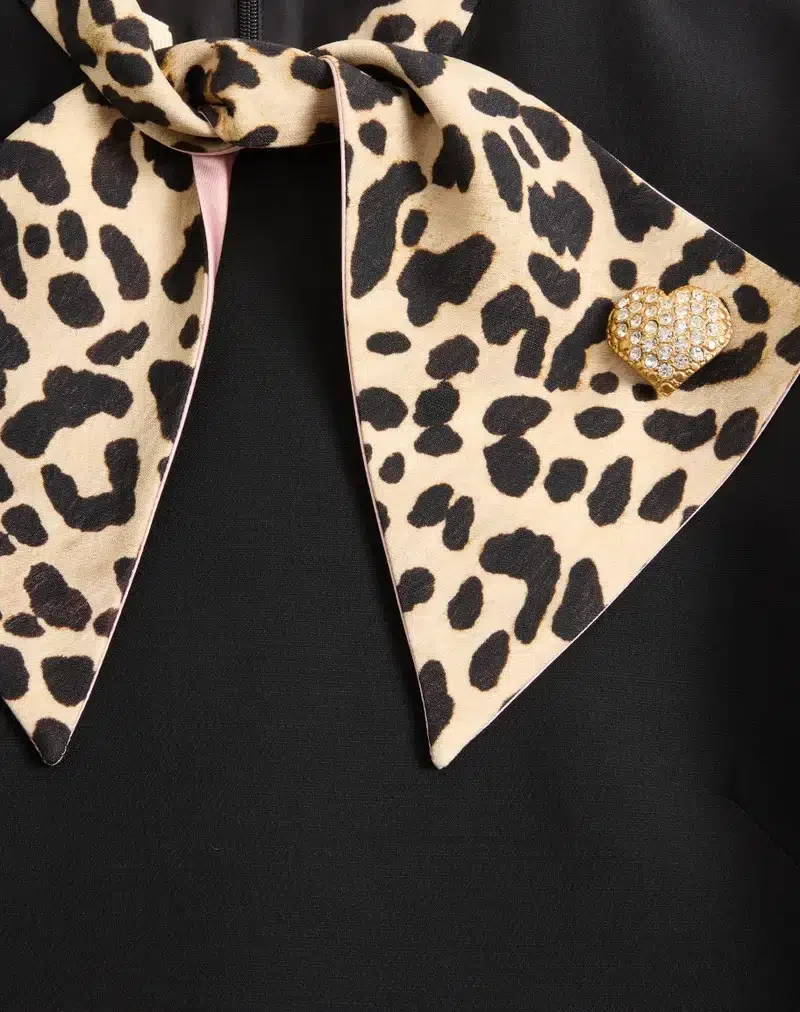 Short Crepe Couture dress with Animalier print bow