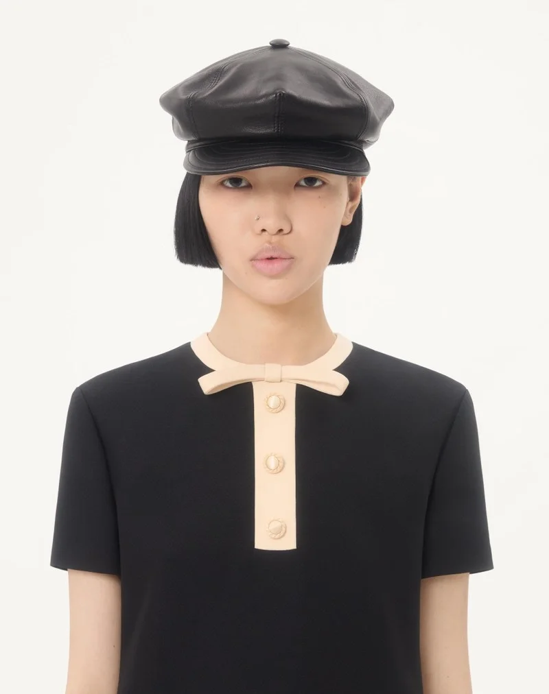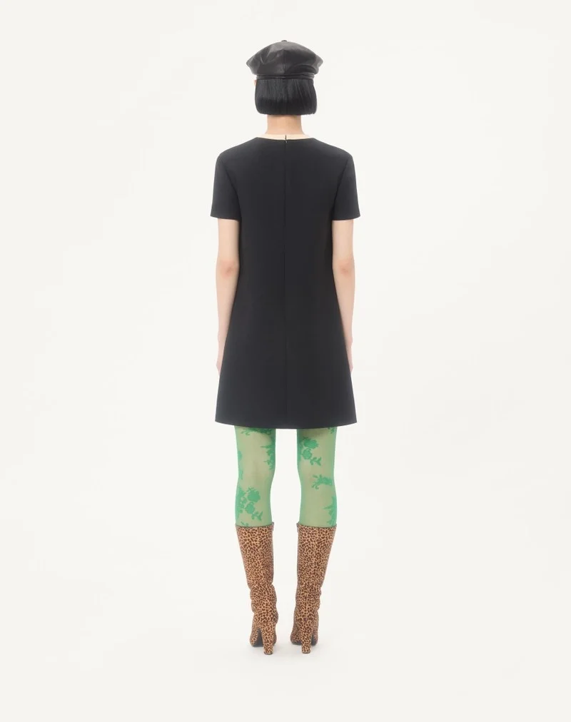 The look of the model is completed by a Valentino Garavani Laseine Bag and Valentino Garavani Hotty Shoes.