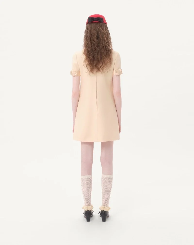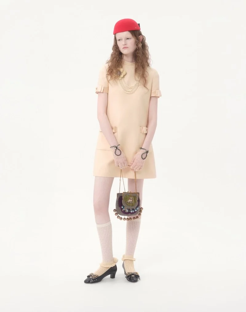 The look of the model is completed by a Valentino Garavani Nellcote Bag and Valentino Garavani Bowow Shoes.