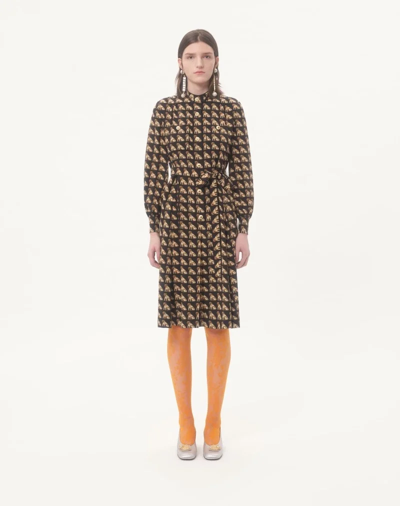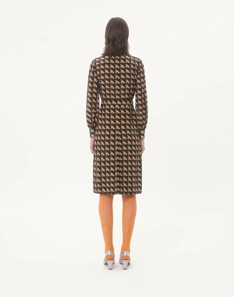 Crepe de Chine midi dress with Petit Charles print