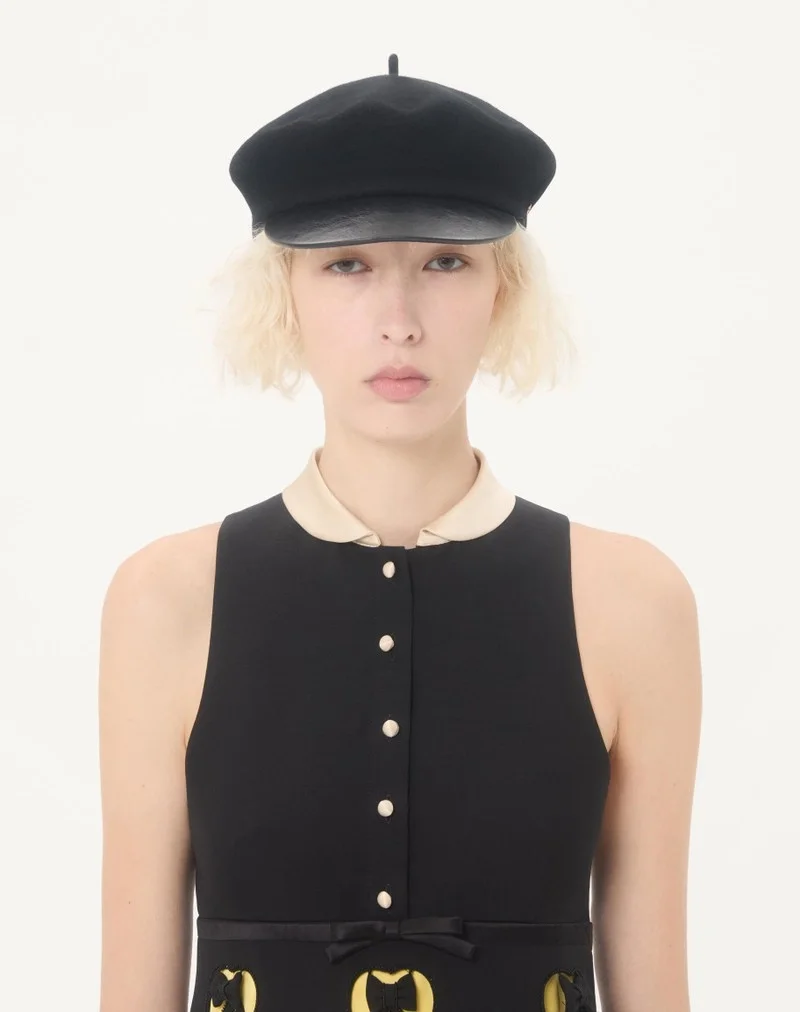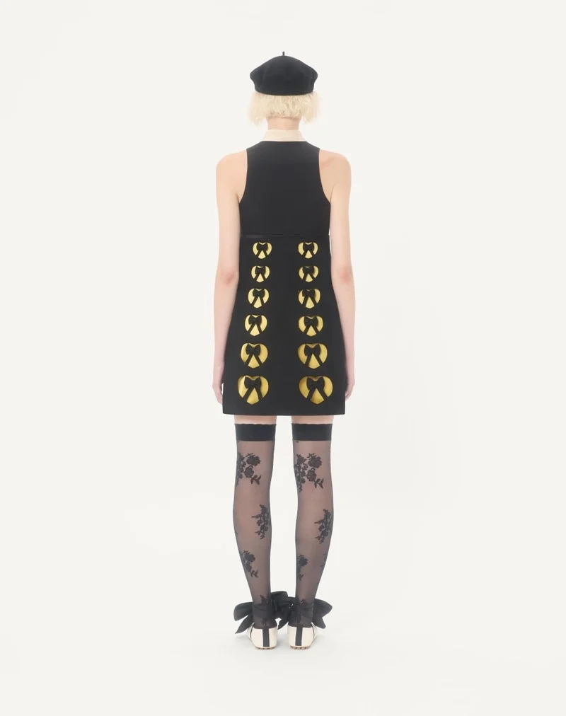 Crepe Couture short dress with cut-out bow and heart embroidery
