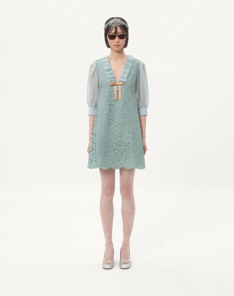Visit the Valentino Online Boutique and discover Short Dress In Heavy Lace for Woman. Complimentary shipping and returns.
