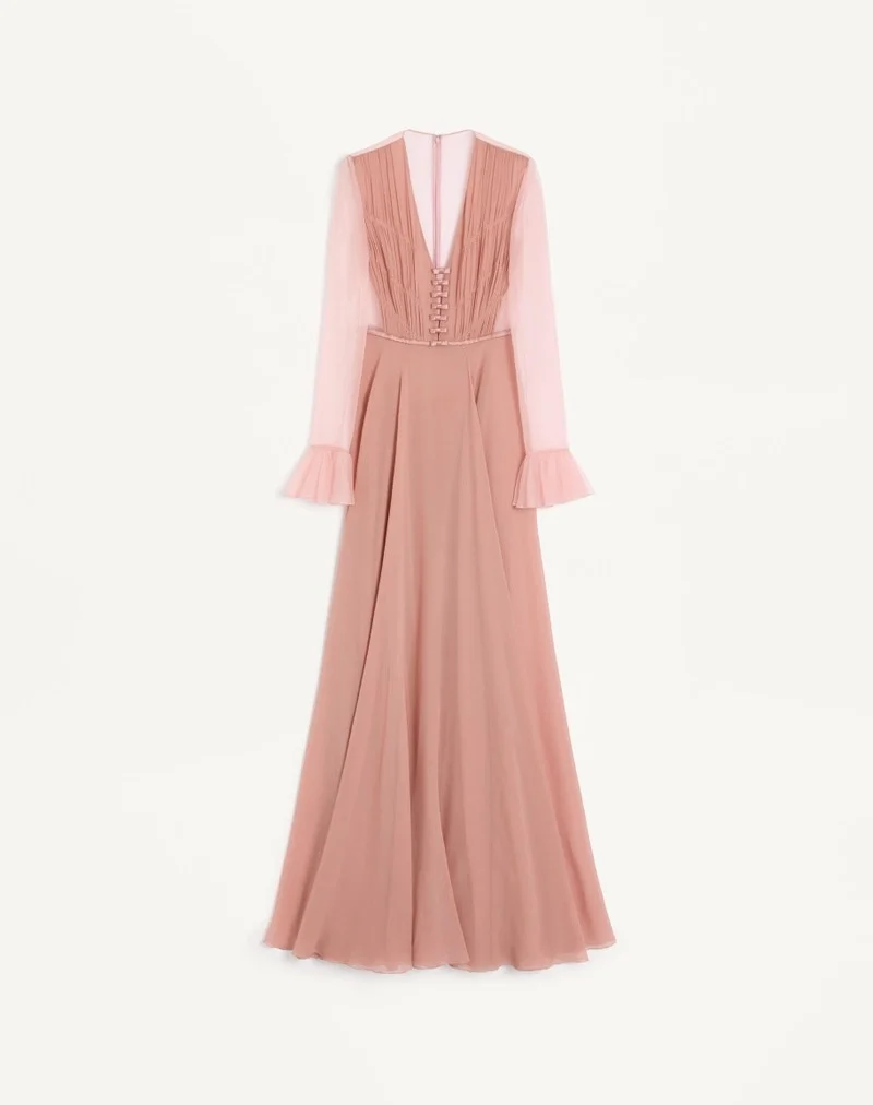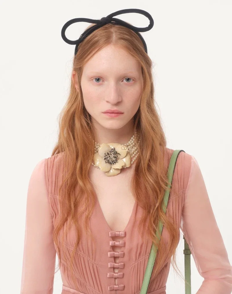 The look of the model is completed by a Valentino Garavani Nellcote Bag and Valentino Garavani Hi Dolly Shoes.