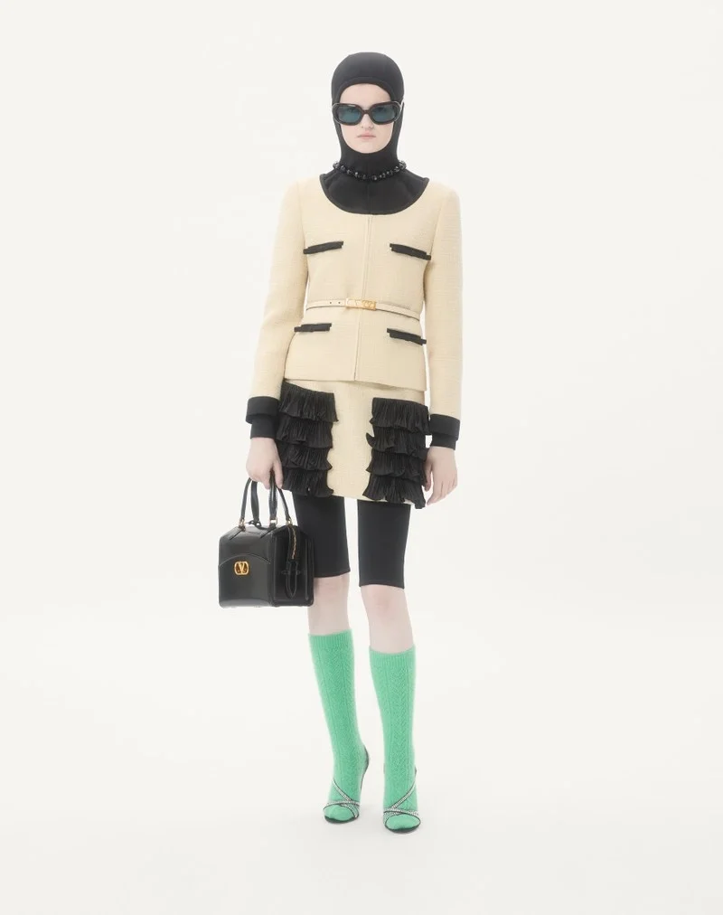 The look of the model is completed by a Valentino Garavani Vain Bag and Valentino Garavani Dans Le Foyer Shoes.