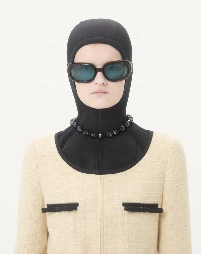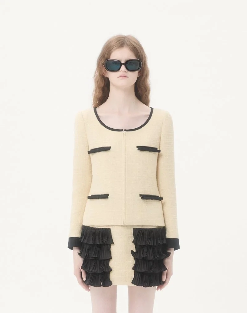 Plain Wool Tweed jacket with contrasting Crepe Couture bows