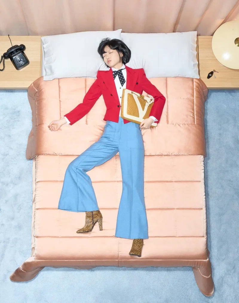 The look of the model is completed by a Valentino Garavani Viva Superstar Bag and Valentino Garavani Hotty Shoes.