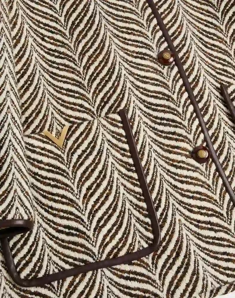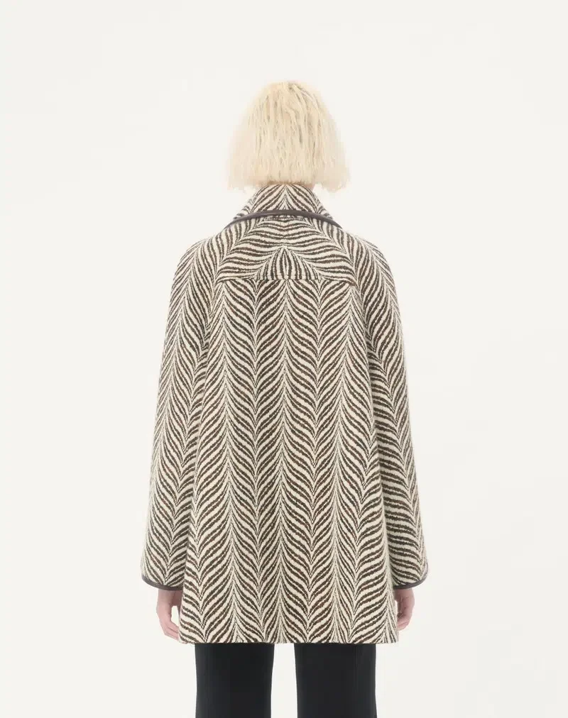 Wool cloth peacoat with Fauve Eclat Animal Print and V Gold
