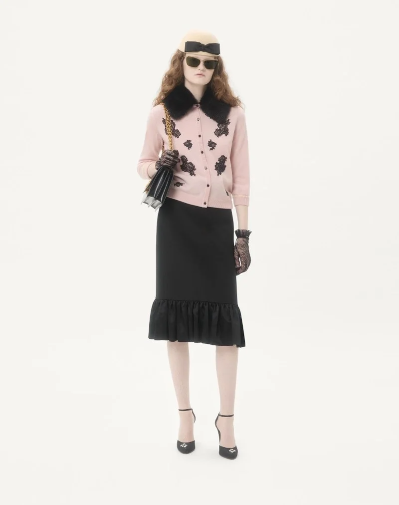The look of the model is completed by a Valentino Garavani Vain Bag and Valentino Garavani Hi Dolly Shoes.