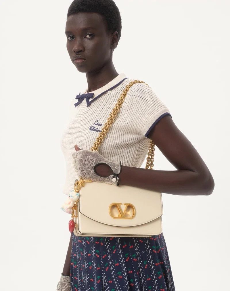 The look of the model is completed by a Valentino Garavani Viva Superstar Bag and Valentino Garavani Hotty Shoes.
