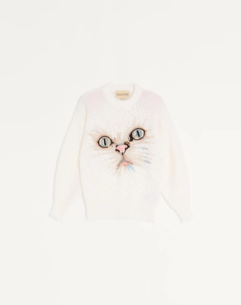 Mohair Wool Sweater with Le Chat de la Maison embroidery