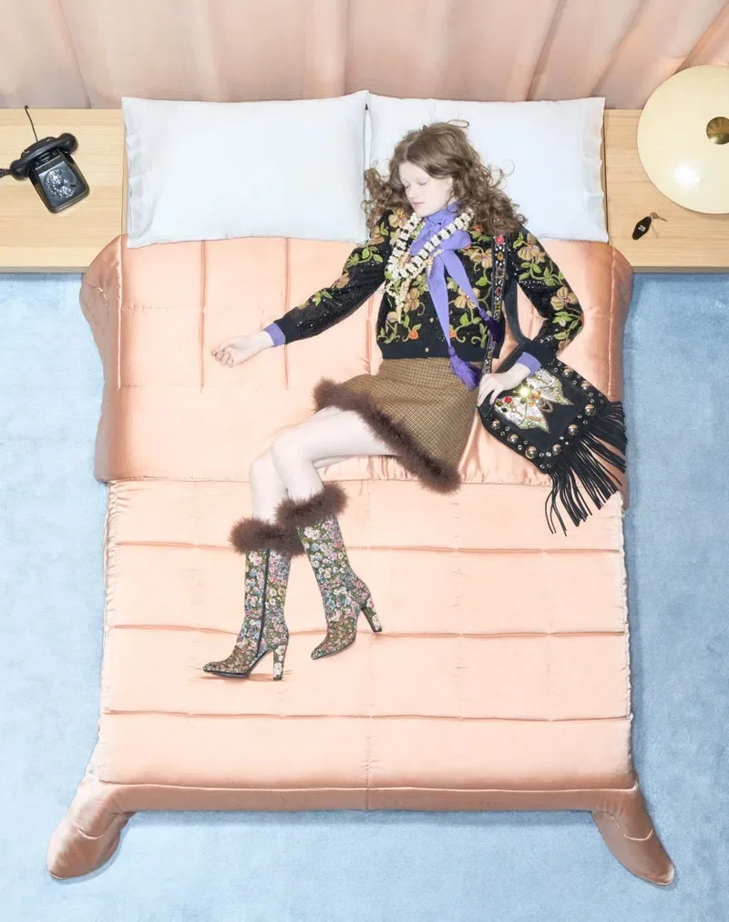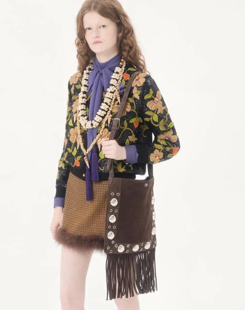 The look of the model is completed by a Valentino Garavani Nellcote Bag and Valentino Garavani Shoes.