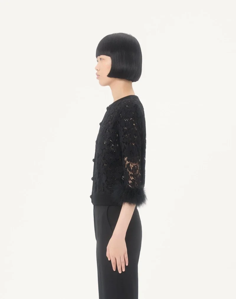 - Lace and cotton (42% Viscose, 33% Cotton, 20% Polyamide, 5% Elastane)