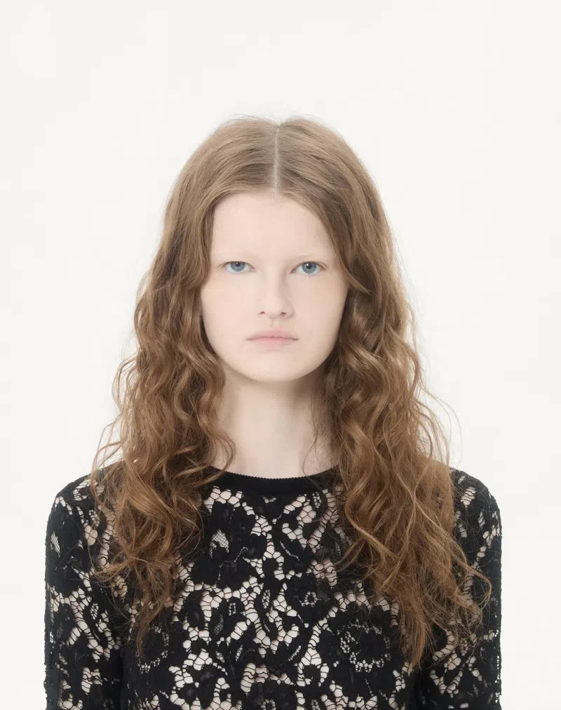 The look of the model is completed by Valentino Garavani Panthea Shoes.