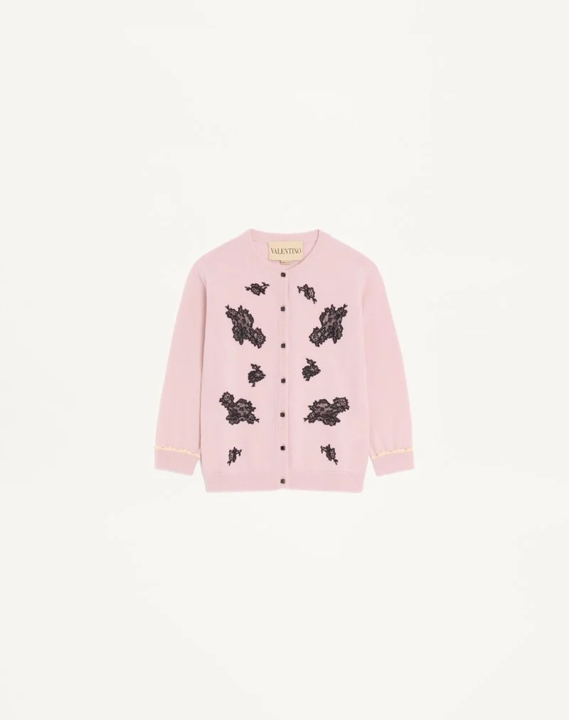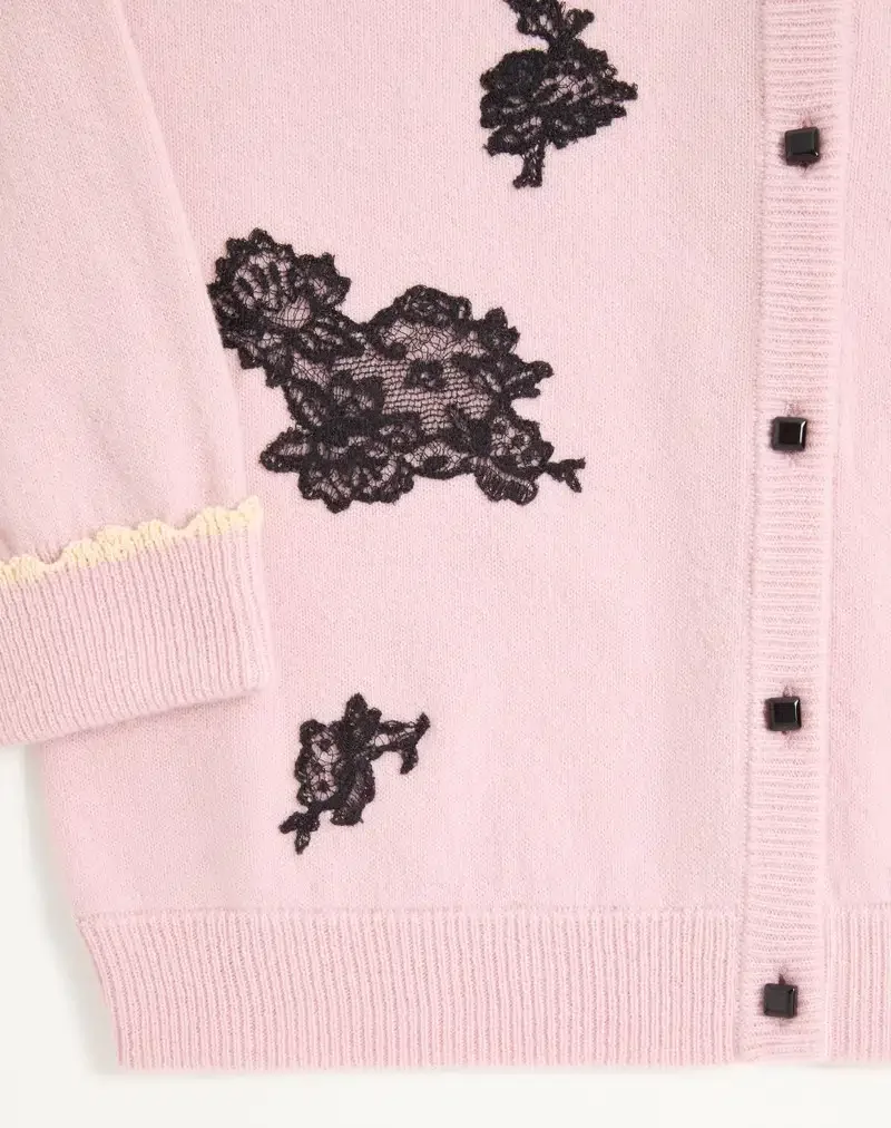 Wool Cardigan with lace inlays