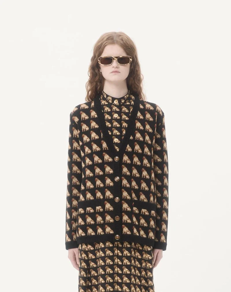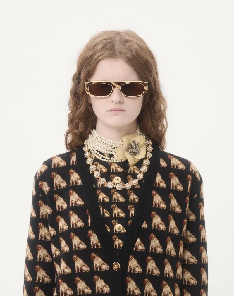 The look of the model is completed by a Valentino Garavani Vain Bag and Valentino Garavani Adamantine Shoes.