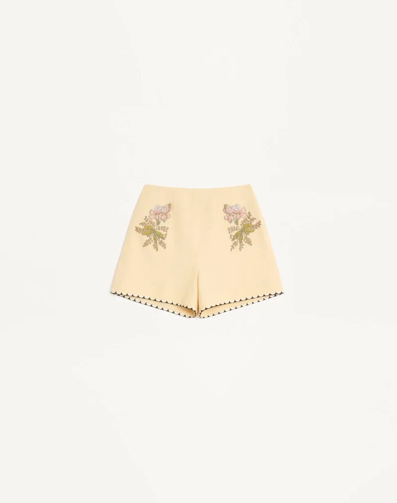 Shorts with floral thread embroidery