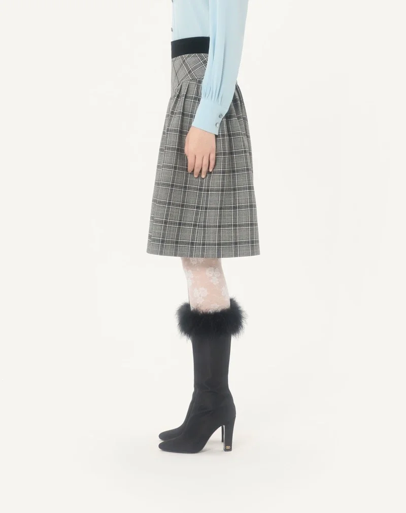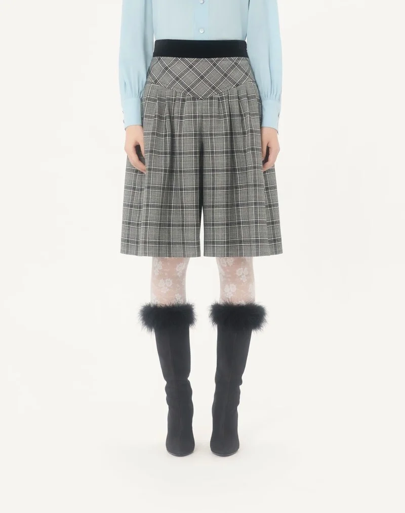 Wool Bermuda shorts with Check pattern and Velvet belt