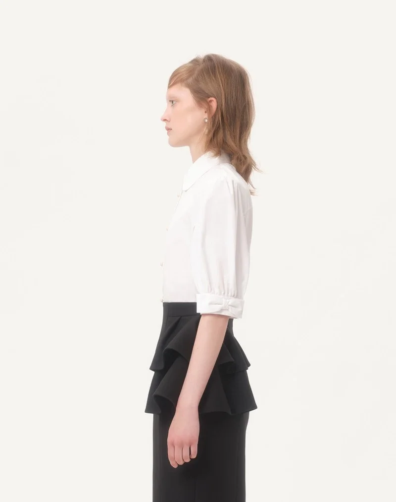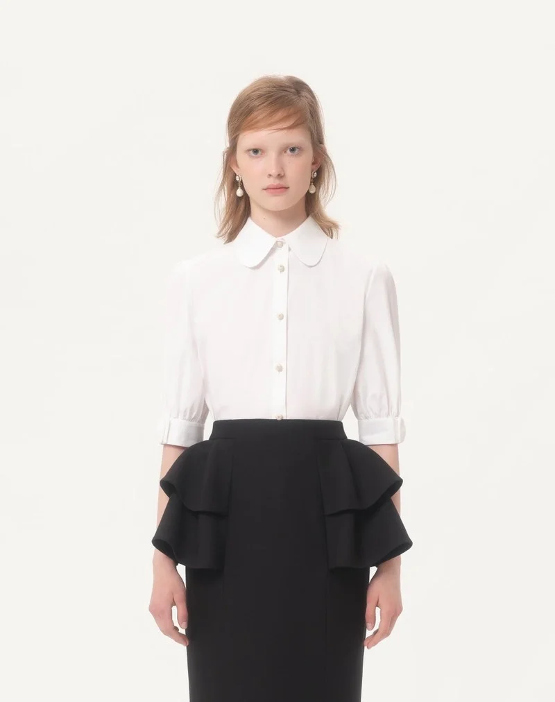 The look of the model is completed by a Valentino Garavani Nellcote Bag and Valentino Garavani Hi Dolly Shoes.