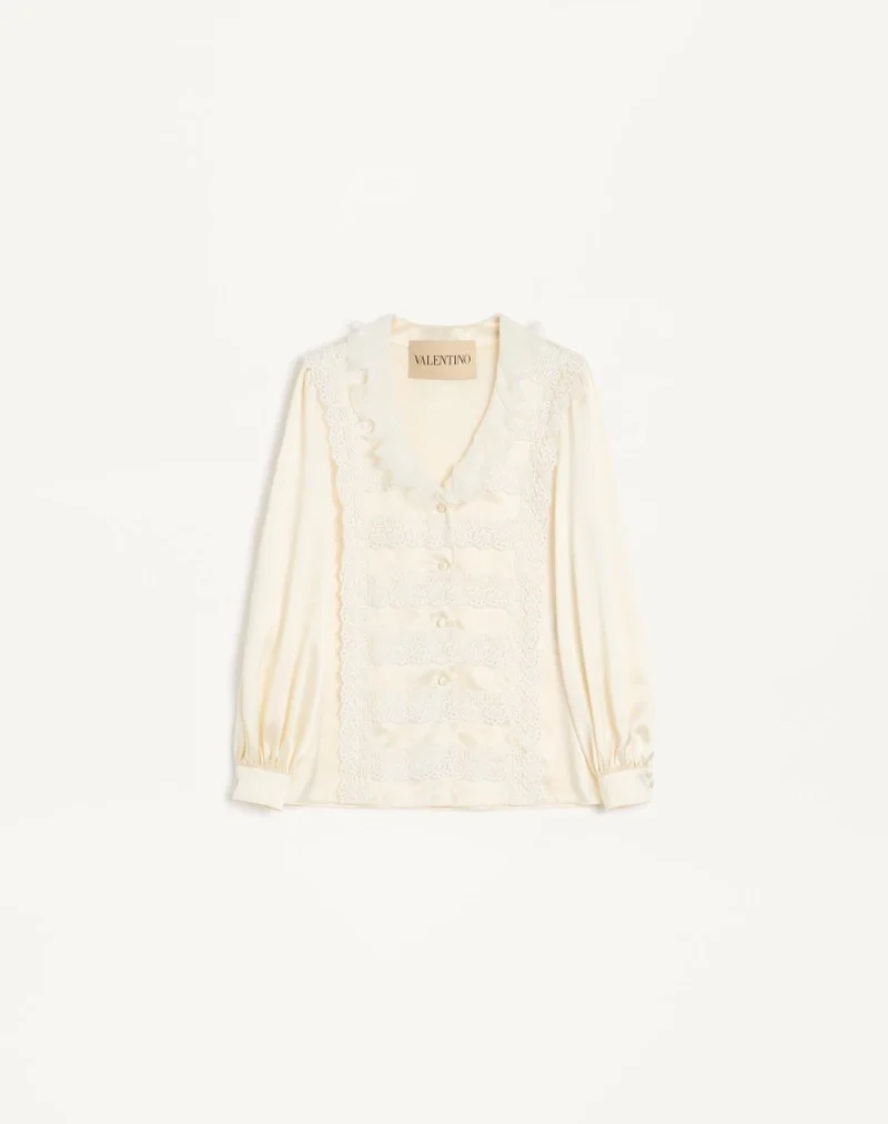 The look of the model is completed by a Valentino Garavani DeVain Bag and Valentino Garavani Adamantine Shoes.