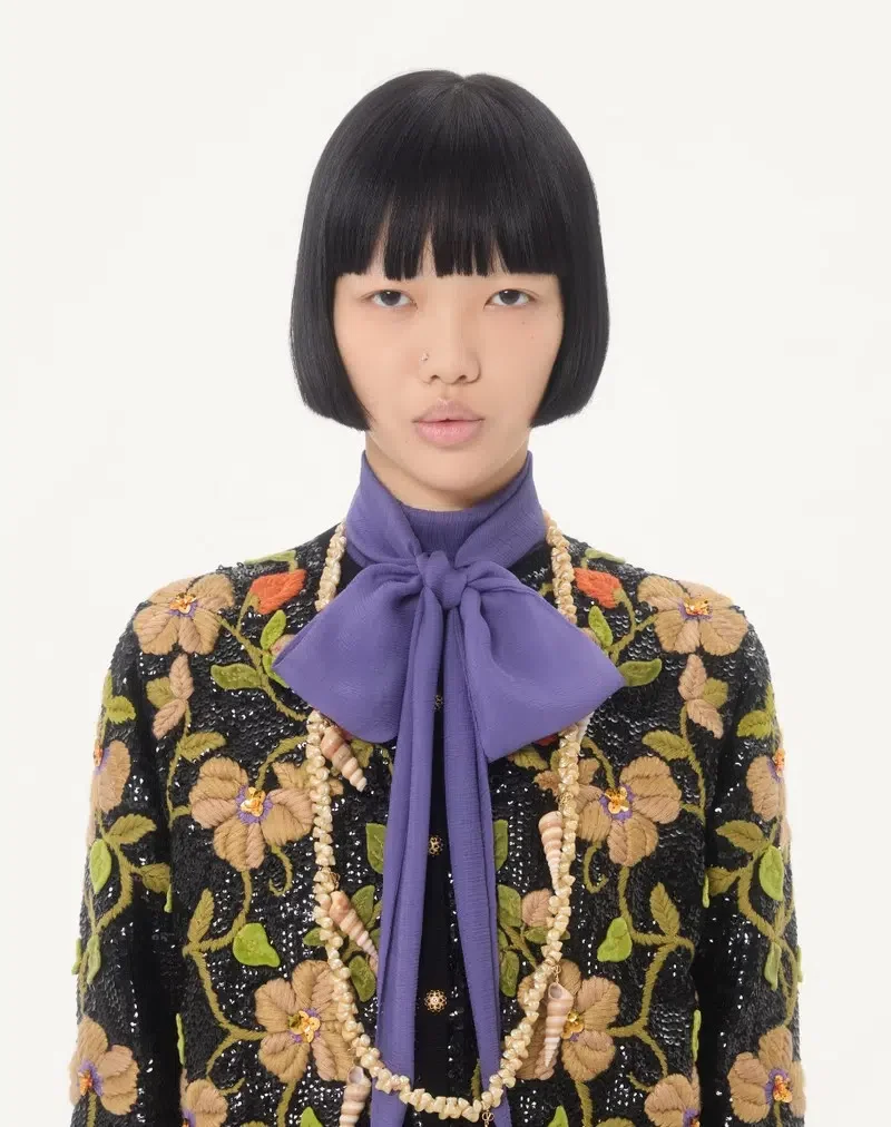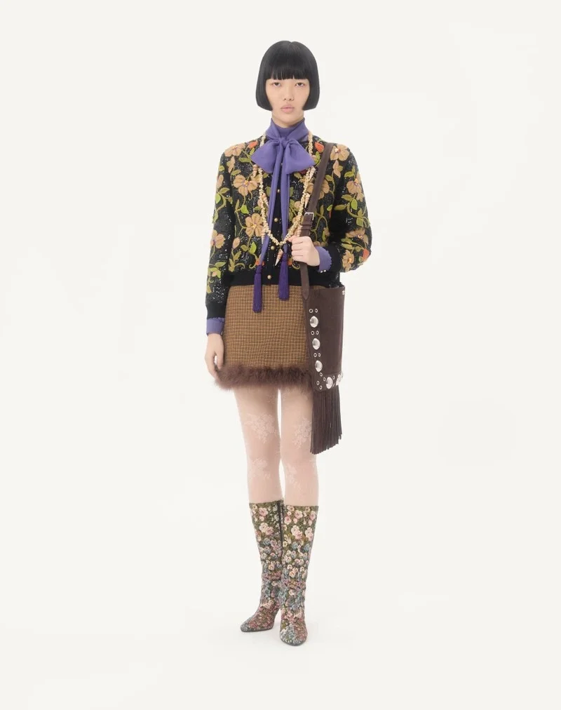 The look of the model is completed by a Valentino Garavani Nellcote Bag and Valentino Garavani Shoes.