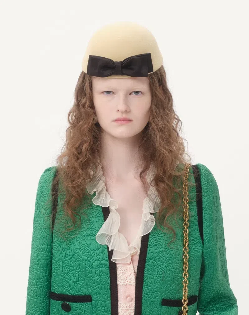 The look of the model is completed by a Valentino Garavani Vain Bag and Valentino Garavani Hi Dolly Shoes.