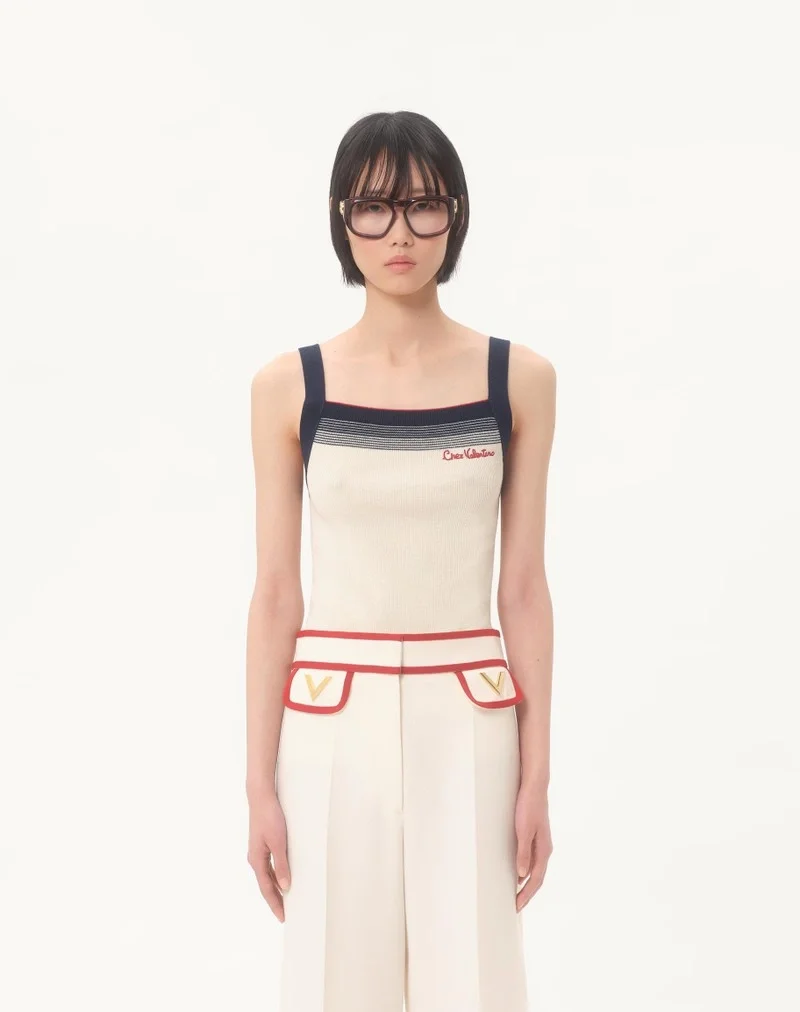 Wool Top with Chez Valentino Embroidery