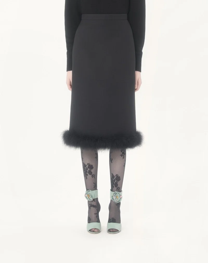 Visit the Valentino Online Boutique and discover Crepe Couture Skirt With Feathers for Woman. Complimentary shipping and returns.