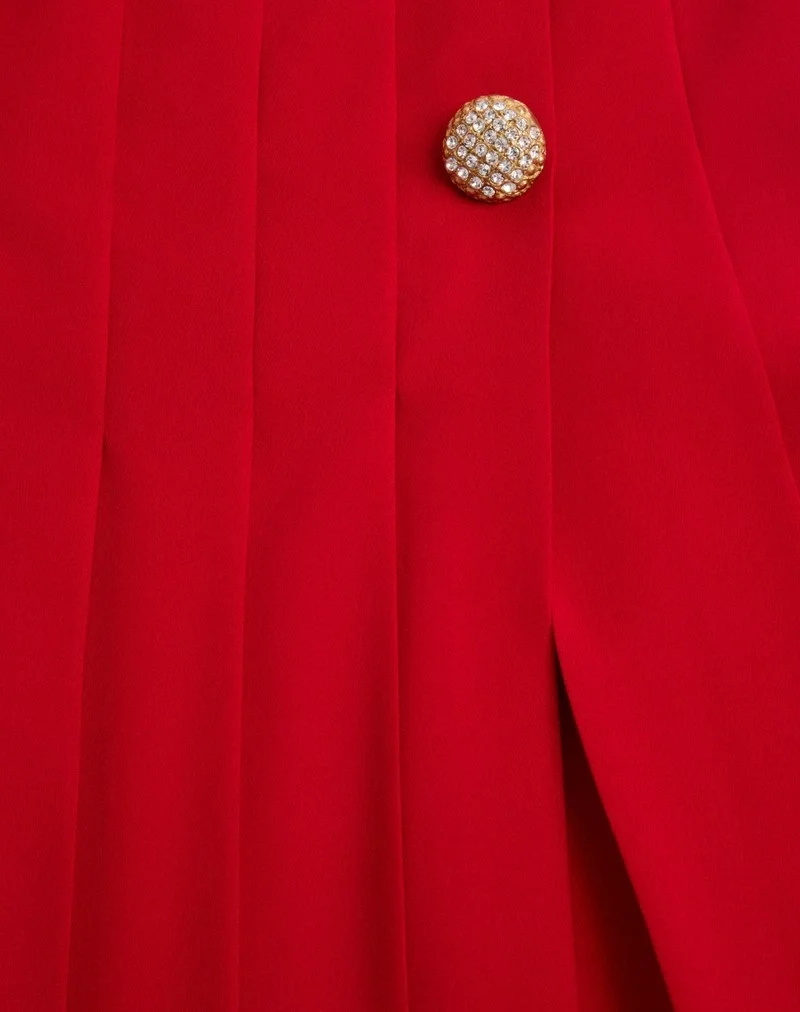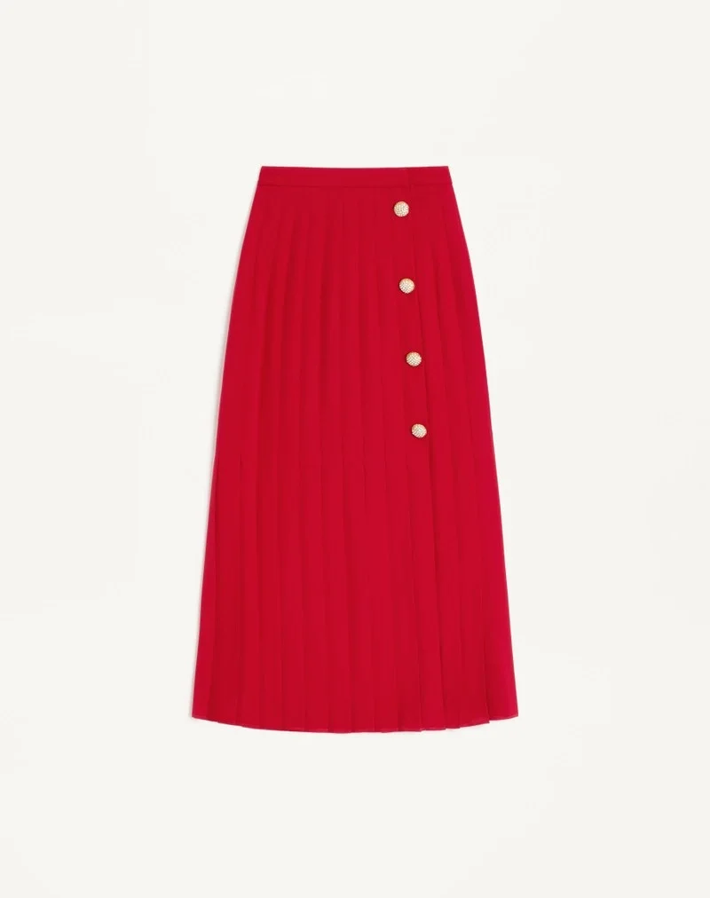 Georgette midi skirt with pleated workmanship embellished with jewel buttons and side slit