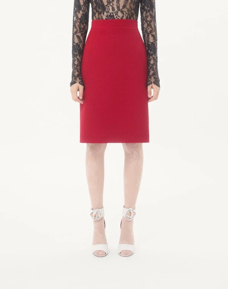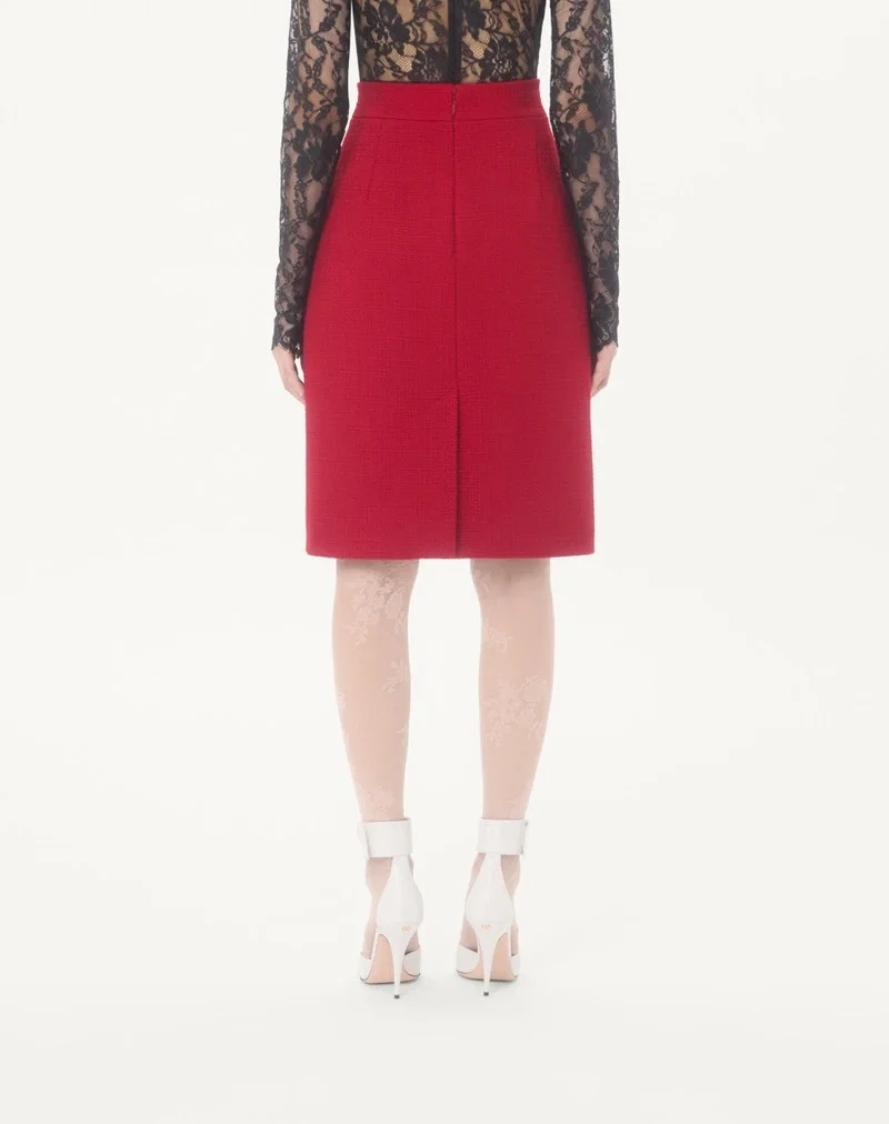 The look of the model is completed by a Valentino Garavani Panthea Bag and Valentino Garavani Drip Rose Shoes.