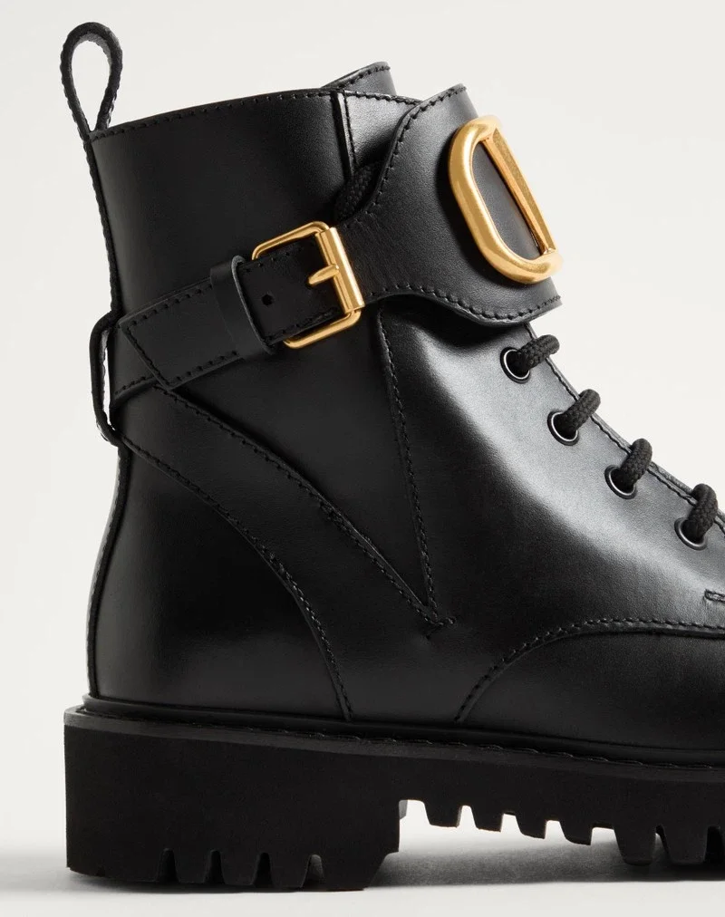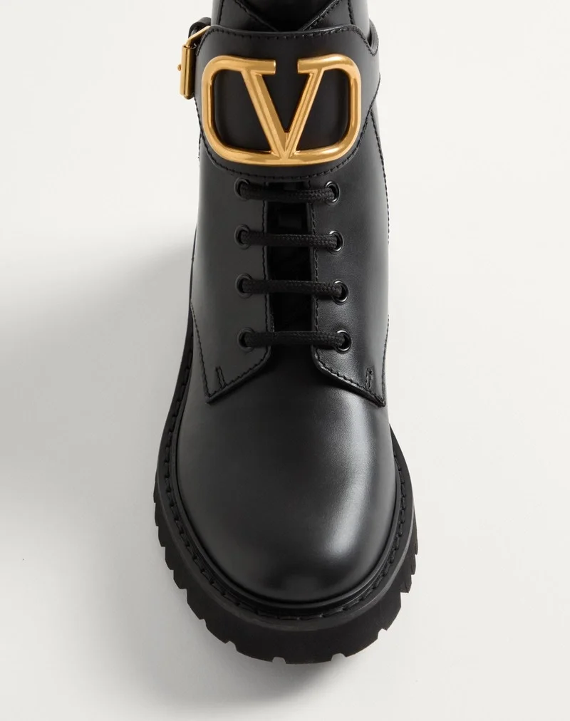 Valentino Garavani calfskin combat boot with VLGO Signature detail.