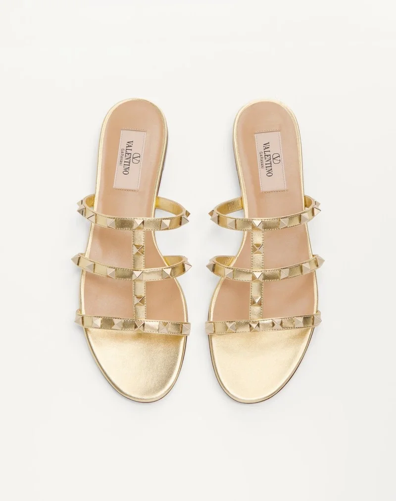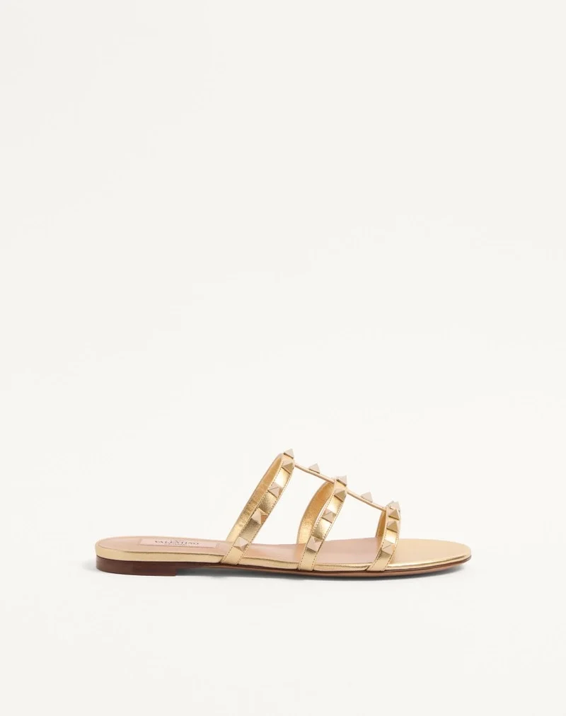 Valentino Garavani Rockstud slide sandal in laminated nappa leather
