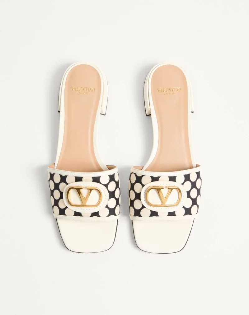 Visit the Valentino Online Boutique and discover Vlogo Signature Slide Sandal In Plus De Pois Fabric 20mm for Woman. Complimentary shipping and returns.