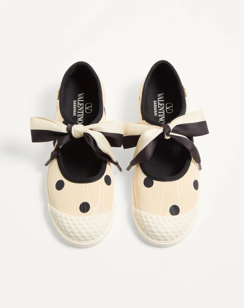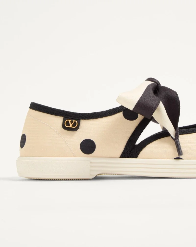 Valentino Garavani Bay By Bay ballerina sneaker in moiré fabric (100% silk) with Plus de pois print