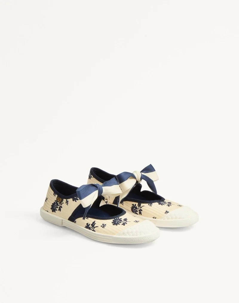 Valentino Garavani Bay By Bay ballerina sneakers in fabric (100% silk) with Papier Floral print and Blue Flower pattern